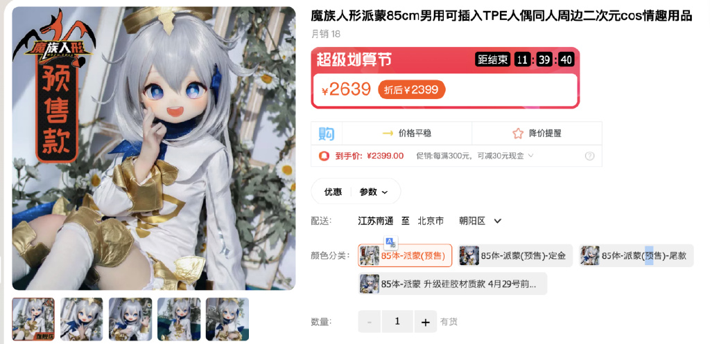 而实体娃娃厂家们,连身高只有85cm的派蒙也没有放过。