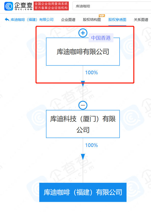 企查查APP显示,近日,库迪咖啡(福建)有限公司成立,法定代表人为钱治亚,注册资本1亿人民币,经营范围含餐饮服务;宠物食品及用品零售;外卖递送服务等。企查查股权穿透显示,该公司由注册于中国香港的库迪咖啡有限公司间接全资持股。