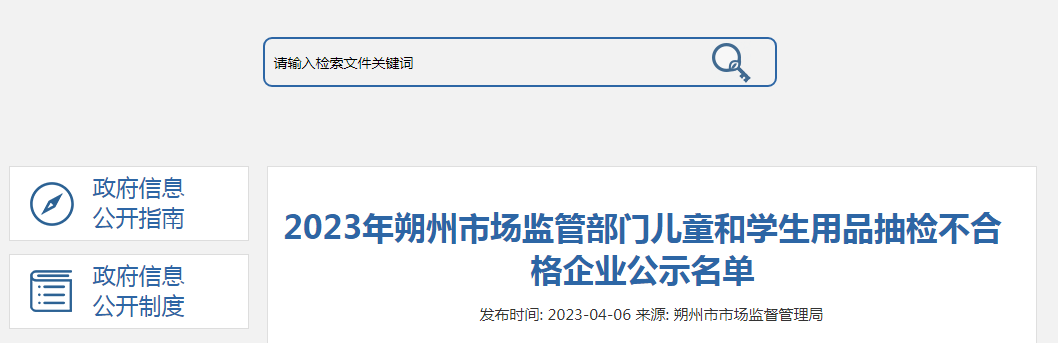 中国质量新闻网讯 4月6日,山西省朔州市市场监督管理局网站公示2023年儿童和学生用品抽检不合格企业名单。本次公示的不合格产品3家抽检企业,分别为山阴县心适贝贝母婴用品店、怀仁市佳家玛生活超市、朔州市客都乐商贸有限公司。