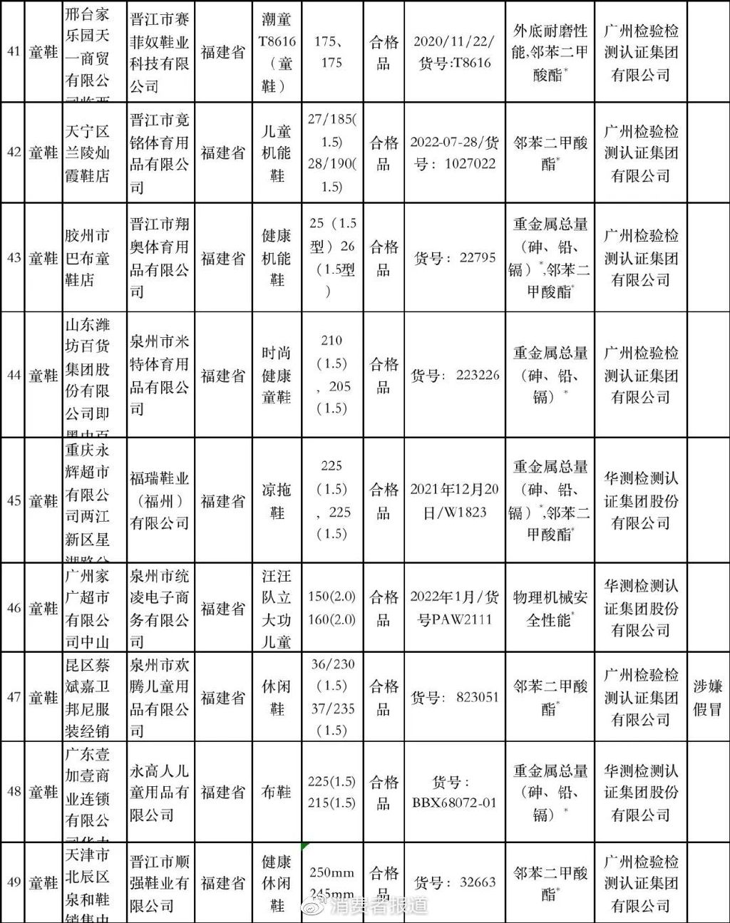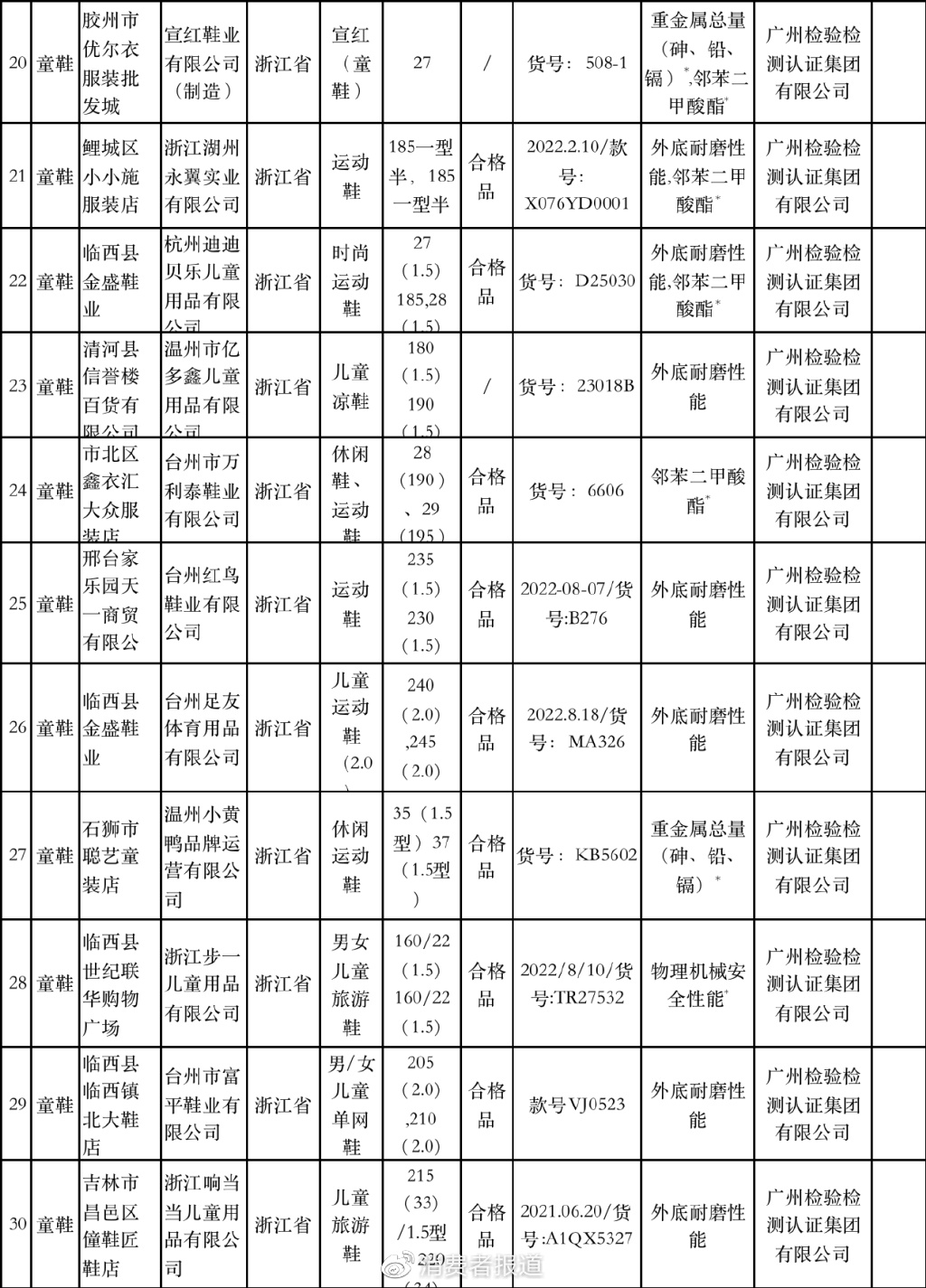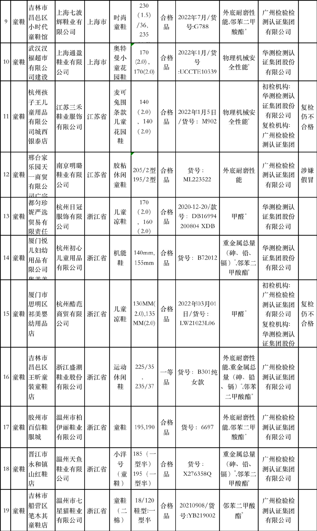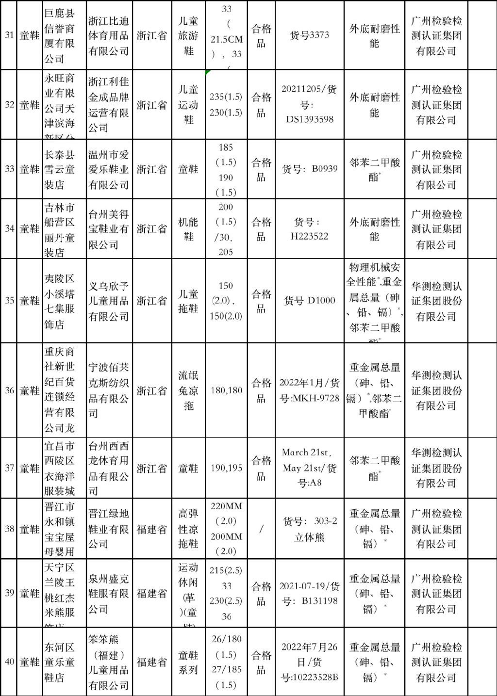 此次不合格的产品涉及标称温州小黄鸭品牌运营有限公司生产的休闲运动鞋、标称笨笨熊(福建)儿童用品有限公司生产的童鞋系列、标称广州英氏销售有限公司生产的婴幼儿鞋等。