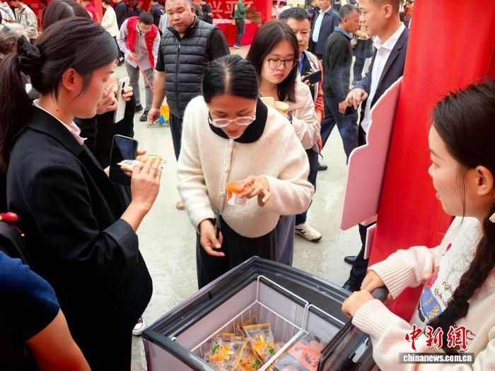 图为平乐县2025年柿子产品产销对接会暨“平乐柿饼”区域公用品牌发布会,参会者品尝“冰柿”产品。邓竣缤 摄中共平乐县委副书记陶捌旺指出,加强农产品区域公用品牌建设,是推动乡村产业振兴、促进农民增收、助力企业发展的关键举措。未来,平乐将持续提升品牌科技内涵与附加值,加强保护与推广,推动柿子产业迈向更高质量的发展新阶段。