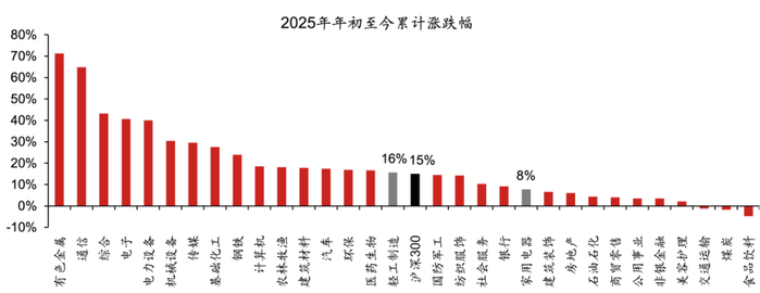 ▲图表1:2025年年初至今轻工制造与家用电器行业均不及