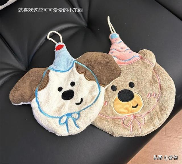 一个挂在厨房,一个挂在卫生间,小狗小熊的造型实在是憨厚可爱,让人忍俊不禁。