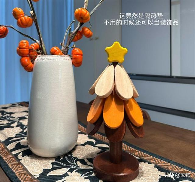 本以为是个放在桌子上的圣诞树摆件,谁曾想其实是一组三个的隔热桌垫。