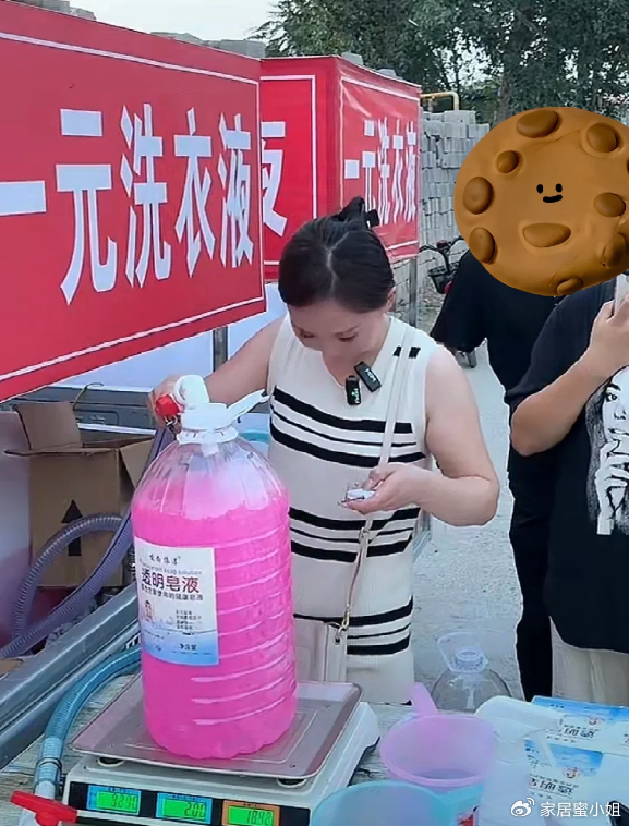 前段时间在菜市场看见有人在卖散装的洗衣液,有很多老人都围在摊位上排队购买。